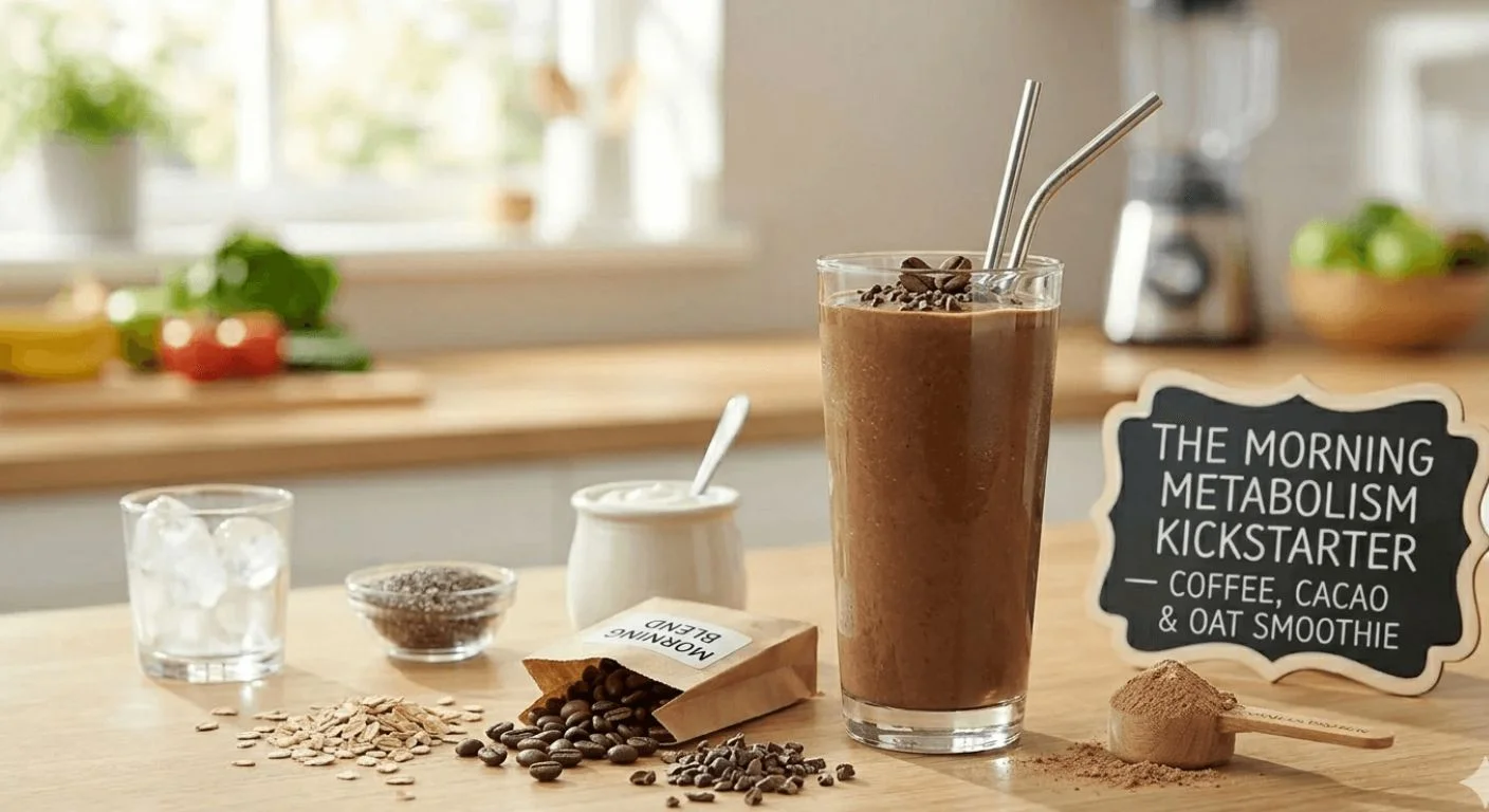 Want to combine your breakfast and morning coffee in one? This high-metabolism breakfast smoothie uses cold brew for a gentle caffeine boost, raw cacao for theobromine (a natural appetite suppressant), and oats for slow-digesting carbs that prevent mid-morning energy crashes.